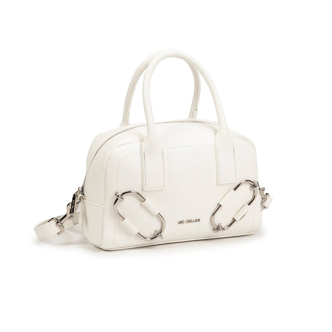 Raffinata e versatile, questa borsa a mano in ecopelle effetto vintage firmata GIO CELLINI è pensata per chi ama accessori dal carattere distintivo. Il logo lettering con finitura argentata illumina il design con un tocco moderno ed elegante.