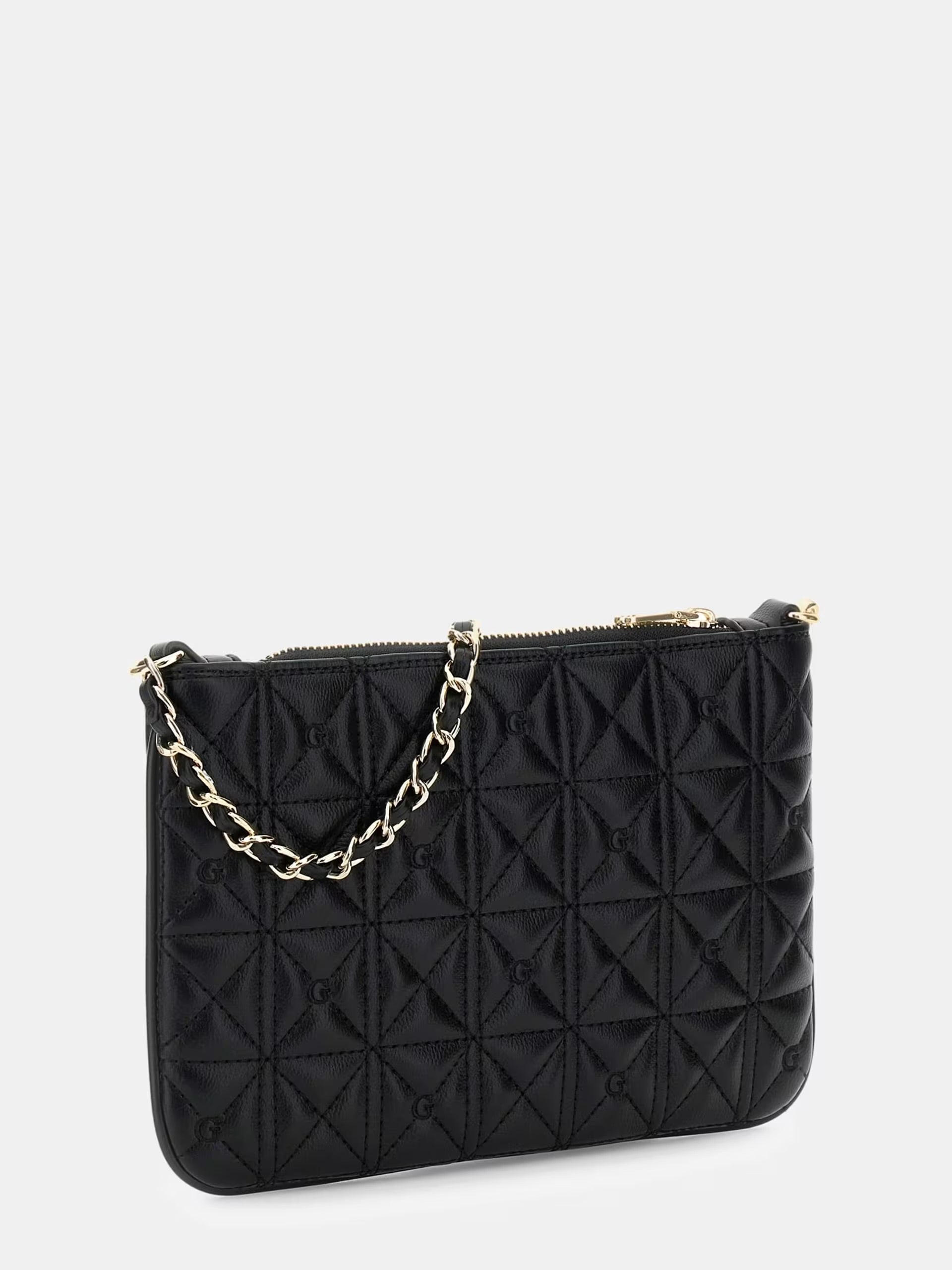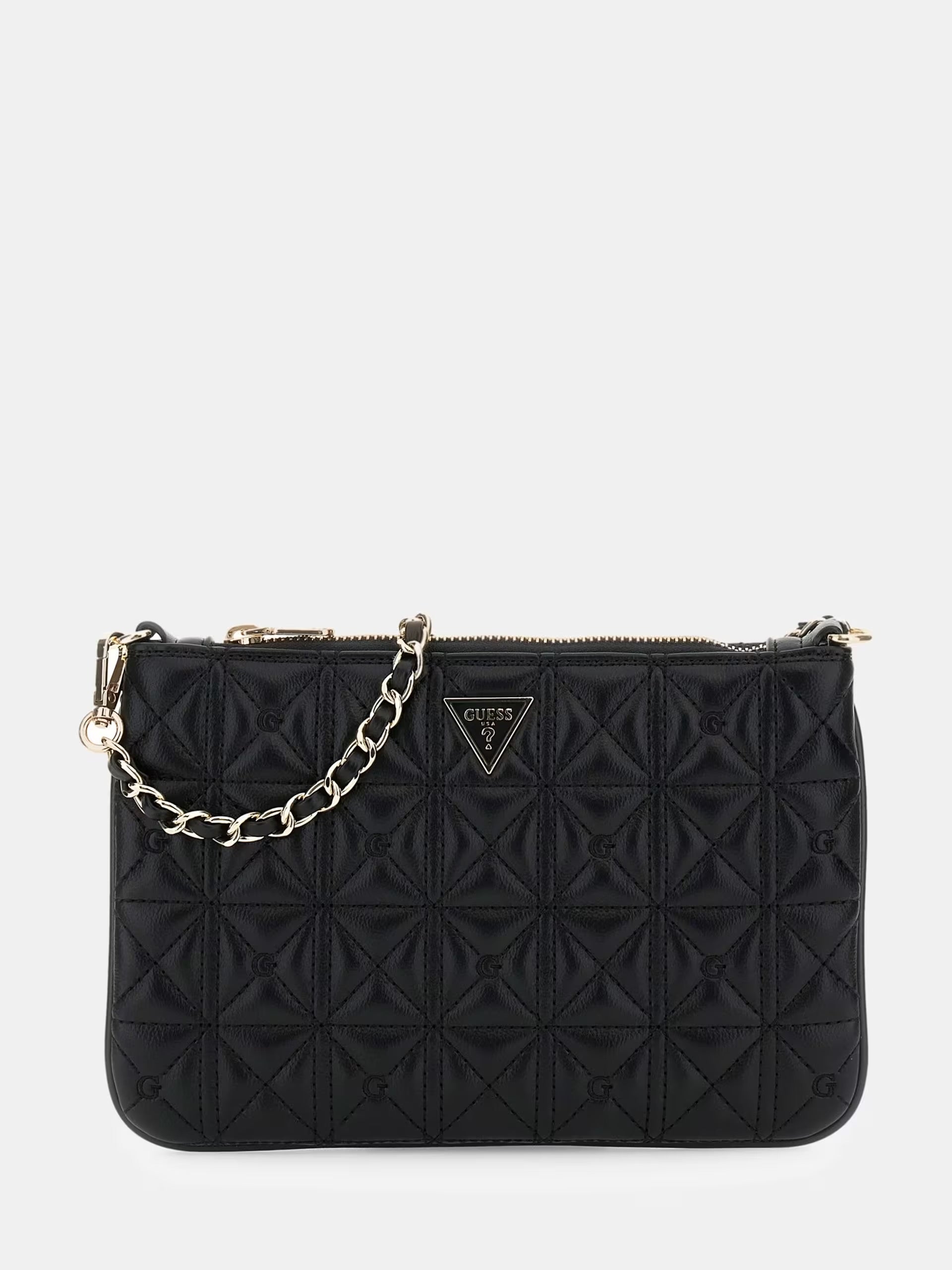 La Borsa a Mano Pouch con Logo è realizzata in similpelle di alta qualità, garantendo durata e resistenza. La chiusura con zip offre sicurezza per gli oggetti personali, mentre le finiture in oro aggiungono un tocco di eleganza. Il metallo triangolato sul davanti completa il design, rendendola un accessorio distintivo.