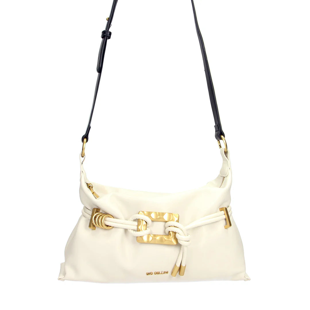Raffinata e funzionale, questa borsa in ecopelle firmata GIO CELLINI unisce stile e praticità in un accessorio distintivo. Il logo lettering con finitura dorata illumina il design con un dettaglio elegante e moderno.