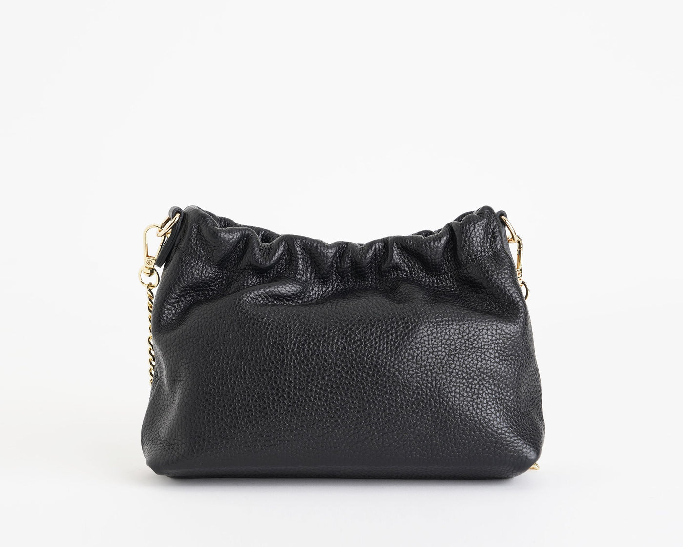 La Borsa a Tracolla Helena è realizzata in vera pelle, garantendo durabilità e stile. Il lettering in metallo conferisce un tocco di eleganza. Con un unico scomparto e una chiusura sicura a coulisse con clip metallica, offre praticità. La tracolla a catena rimovibile consente versatilità nell'uso. Dimensioni compatte: H.16 x L.22 x P.7 cm.