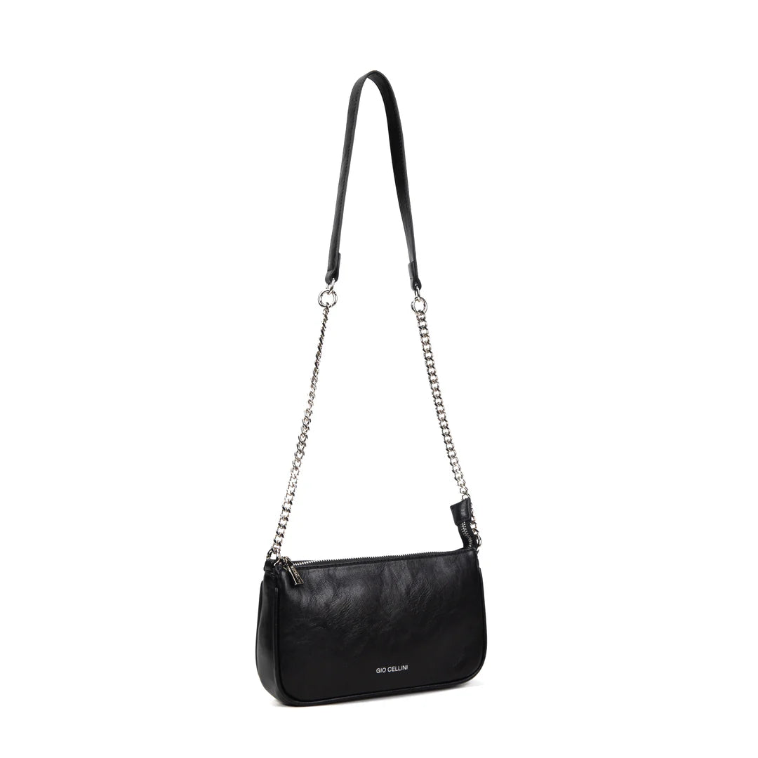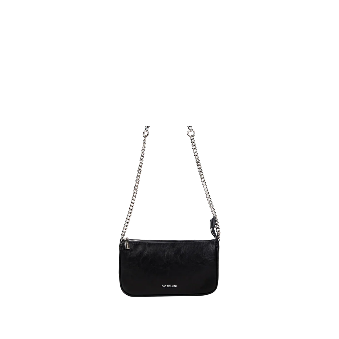Pochette in scamosciato con logo embossato argentato. Chiusura con cerniera, tracolla a catena e spalla in scamosciato. Perfetta per completare i tuoi look con stile, dal giorno alla sera.