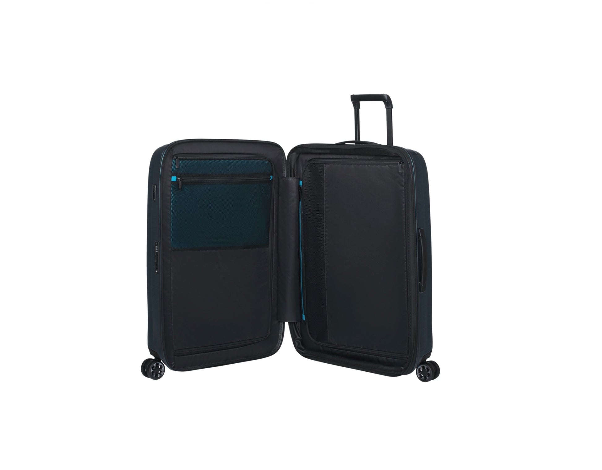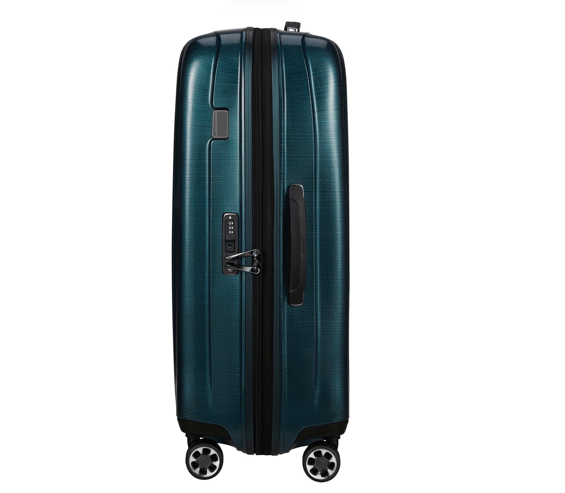 Il Trolley Espandibile Nexis 76 cm si distingue per la sua robustezza e versatilità. Realizzato in ROXKIN™ (polipropilene), offre una struttura rigida e leggera, pesando solo 3.5 kg. La capacità espandibile da 29 a 32 cm consente di ottimizzare lo spazio per i viaggi. Le quattro ruote con sospensione garantiscono un trasporto silenzioso e confortevole, mentre il sistema di chiusura TSA offre sicurezza. Include un packing cube per facilitare l'organizzazione interna.